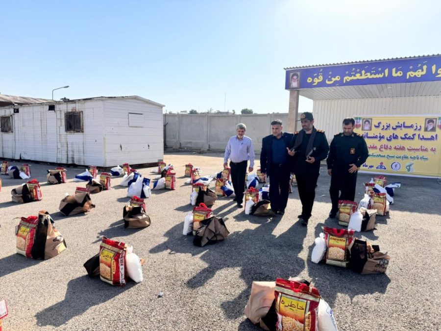 عصر مسجدسلیمان // همزمان با هفته دفاع مقدس طی آئینی با حضور پیمان جهانگیری فرماندار مسجدسلیمان و سرهنگ میرسالاری فرمانده ناحیه مقاومت بسیج در قالب رزمایش کمک های مؤمنانه و با همکاری شرکت‌ بهره‌برداری نفت و گاز و گروه های جهادی ناحیه مقاومت بسیج تعداد ۵۰۰بسته کمک مؤمنانه تهیه و توزیع گردید.