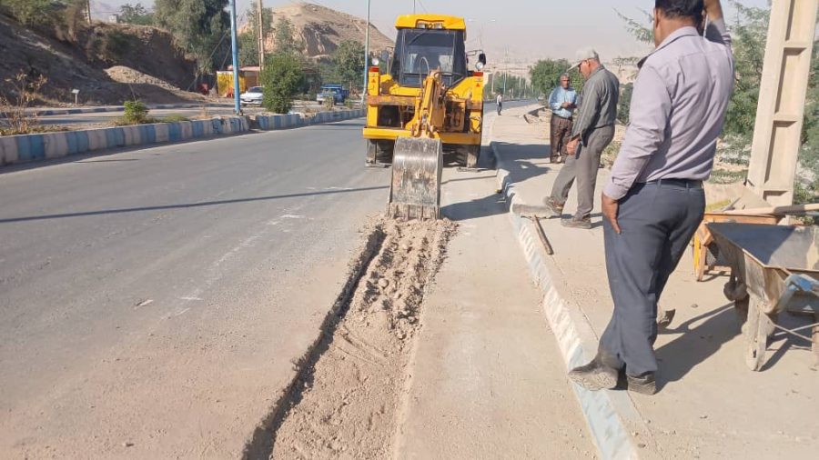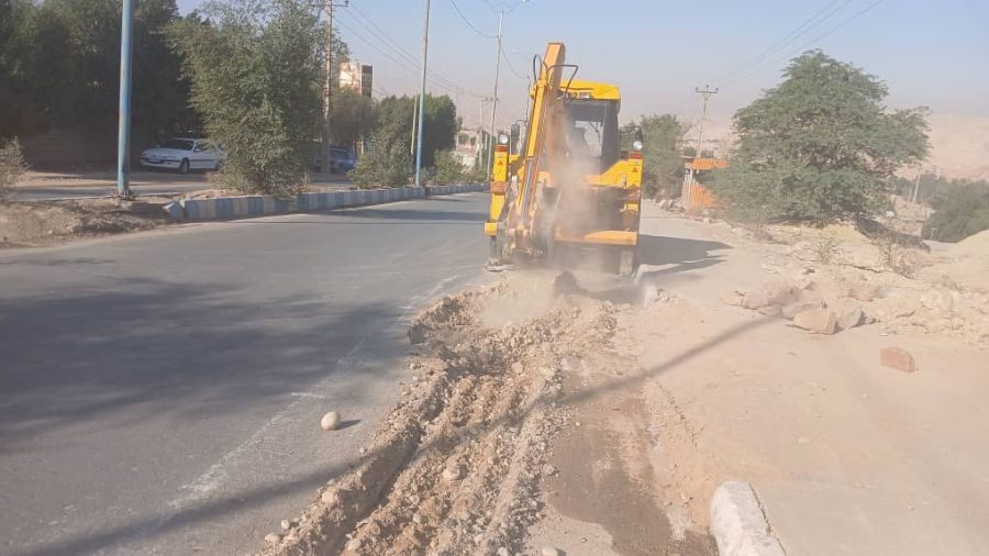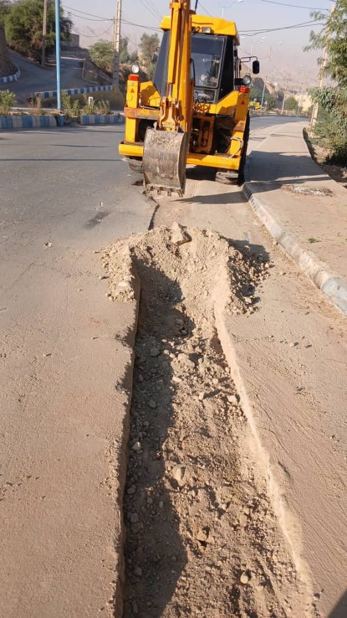 عصر مسجدسلیمان// عملیات زیرسازی نوار حفاری مسیر اصلی منطقه شیخ مندنی و منطقه نفتک جنب تالار یاسمن با دستور محمد خسروی شهردار مسجدسلیمان توسط معاونت امور زیربنایی شهرداری (واحد عمران) انجام شد.